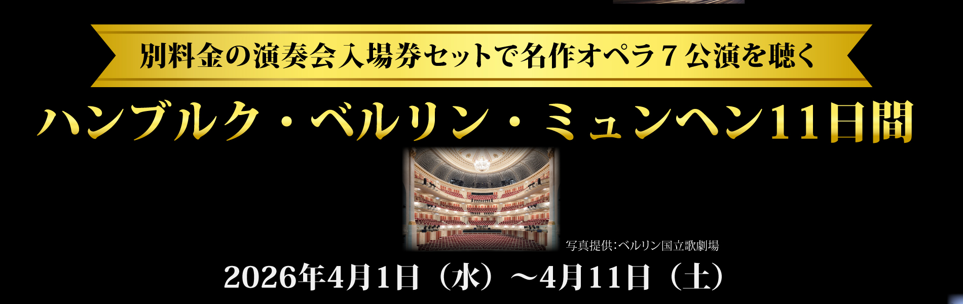 別料金の演奏会入場券セットで名作オペラ7公演を聴く ハンブルク・ベルリン・ミュンヘン11日間