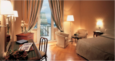 1882年の創業後の瞬く間に貴人やオスカー・ワイルド、モーパッサンといった著名な文化人の豪華な滞在先となりました。第二次世界大戦で甚大な被害を受けましたが、丹念に再建され、1950年に再オープンしました。それ以来、最高級ホテルとしての地位を保ち、モナコ大公レーニエ3世とグレース・ケリー、スウェーデン王グスタフ、リタ・ヘイワース、エロール・フリン、ジーナ・ロロブリジーダと訪れた著名人は枚挙にいとまがありません。なかでもナポリ生まれのエンリコ・カルーソは生涯このホテルを愛し、人生の最後までこのホテルで過ごしています。1人部屋は25㎡、2人部屋は30㎡のともにオーシャンヴューの部屋をご用意しております。サン・カルロ劇場へは1㎞(徒歩15分)の距離です。 部屋数:160